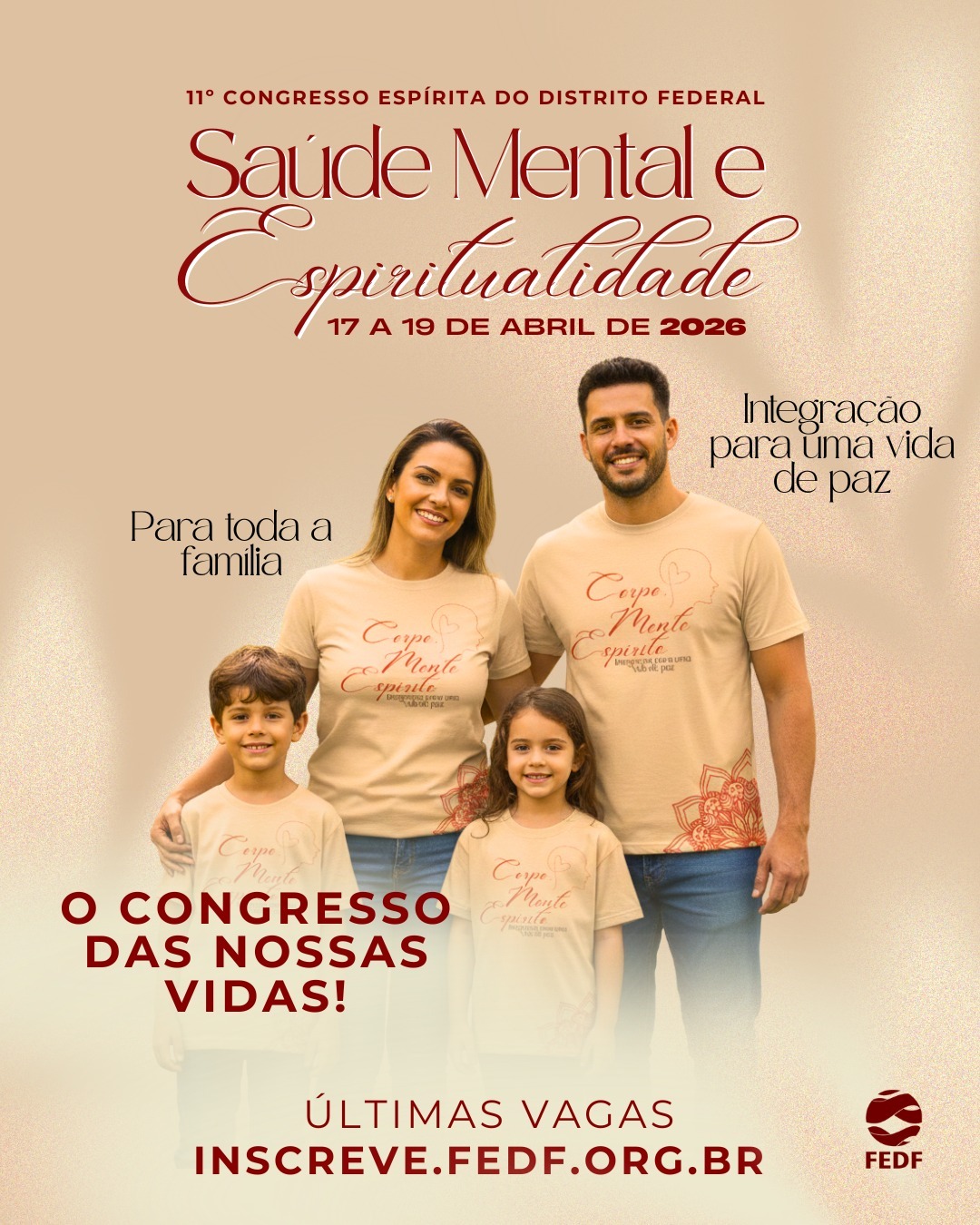 A Fraternidade Sem Fronteiras (FSF) é presença confirmada na 11ª edição do Congresso Espírita do Distrito Federal, que acontece entre os dias 17 e 19 de abril, no Parlamundi da LBV, em Brasília.